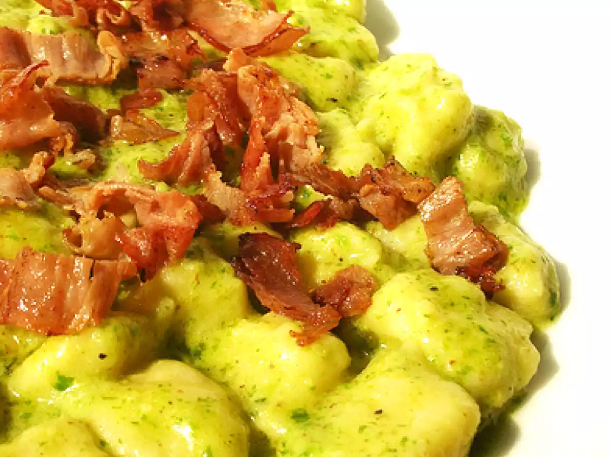 Gnocchi con pesto di aglio orsino e speck