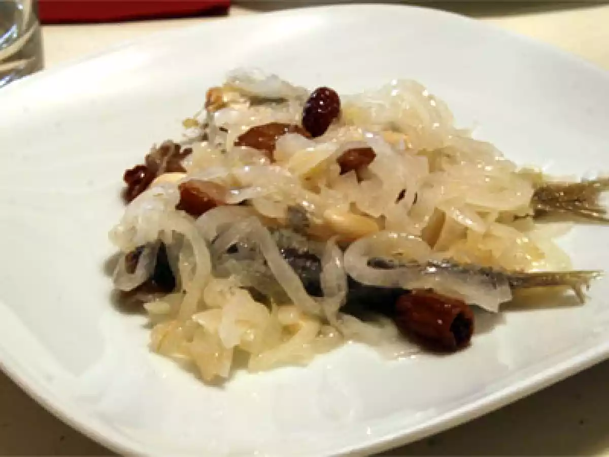 • Disponete le sarde in una terrina e ricopritele con la composta di cipolle, procedendo a strati sino a esaurire gli ingredienti.
