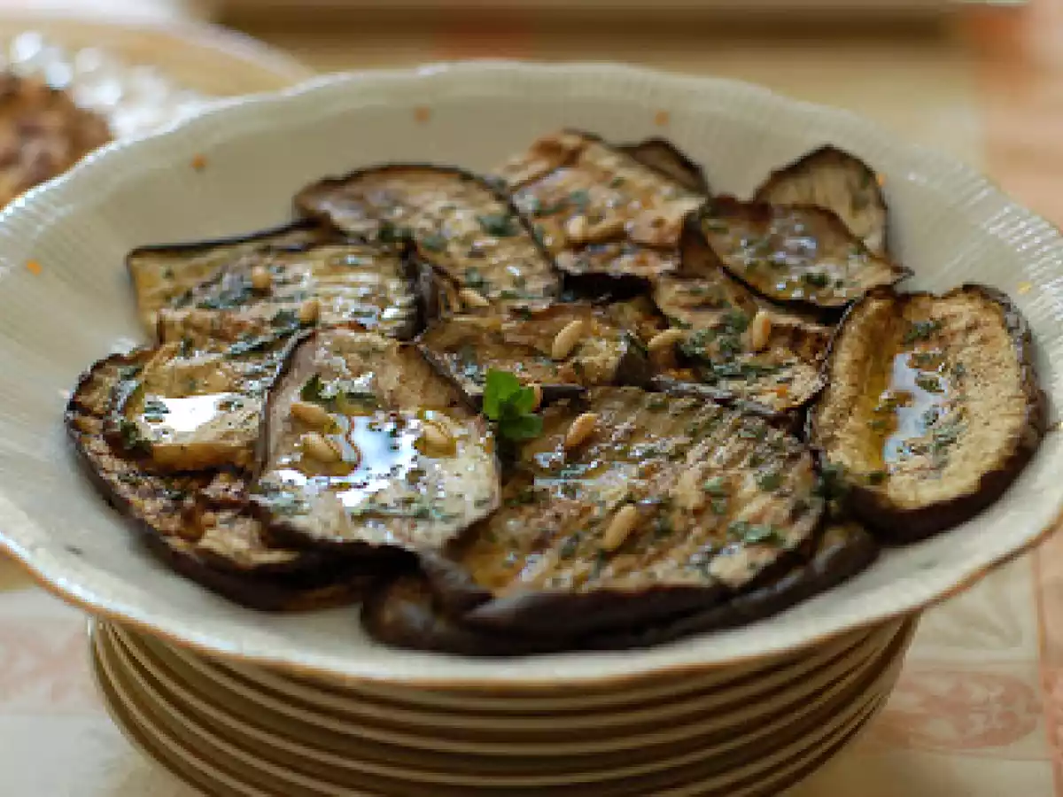 Melanzane marinate alla menta, prezzemolo e pinoli tostati