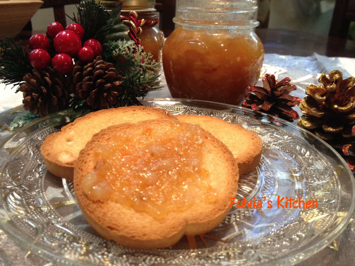 Premesso che si tratta della prima confettura fatta in vita mia (confettura perché non è di agrumi, altrimenti sarebbe stata una marmellata, come da disposizione dell'Unione europea), vorrei presentarvi questa delizia, il cui profumo vi farà pensare subito al Natale... ai mercatini, al vin brulè..... Insomma, a me questi profumi fanno venire il sorriso mentre faccio colazione spalmandola sulle fette biscottate!