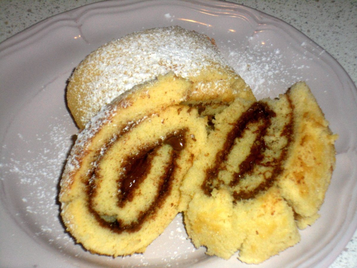 Spalmate la Nutella con l'aiuto di una spatola - Arrotolate su se stesso il pan di spagna ( ci vuole un po' di pratica prima di riuscire a non romperlo)