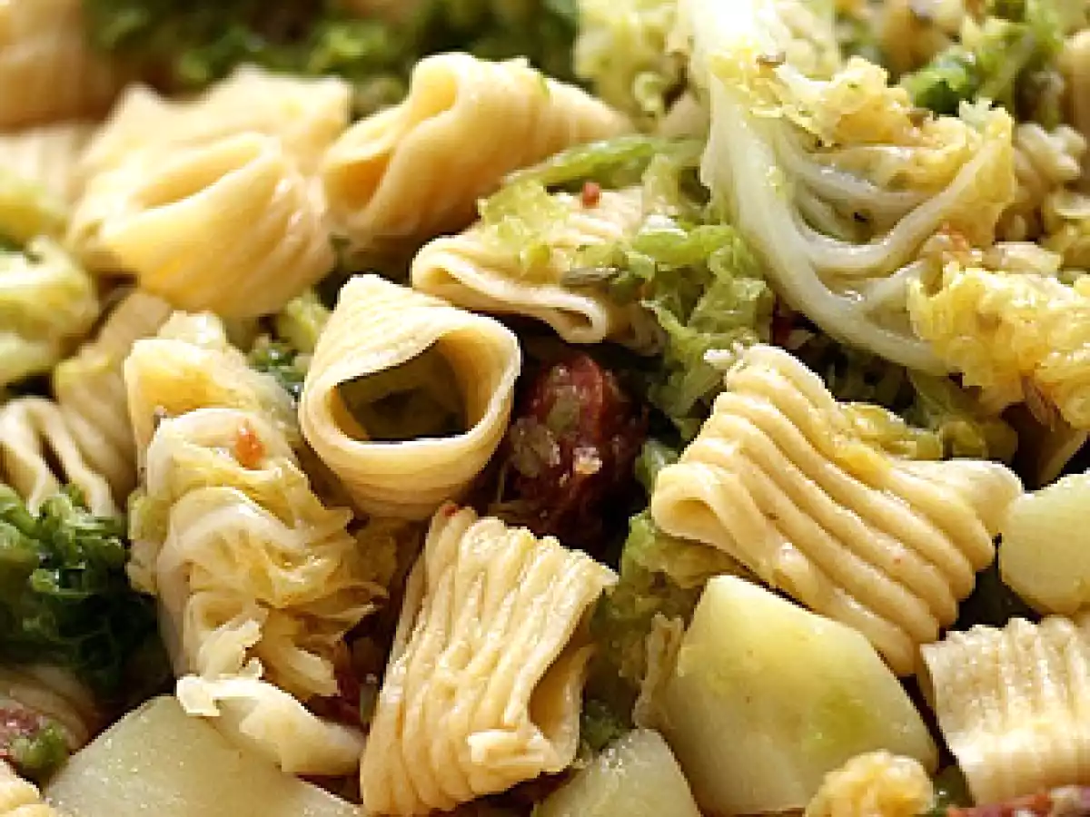 Lumachelle con verza, patate e salsiccia.