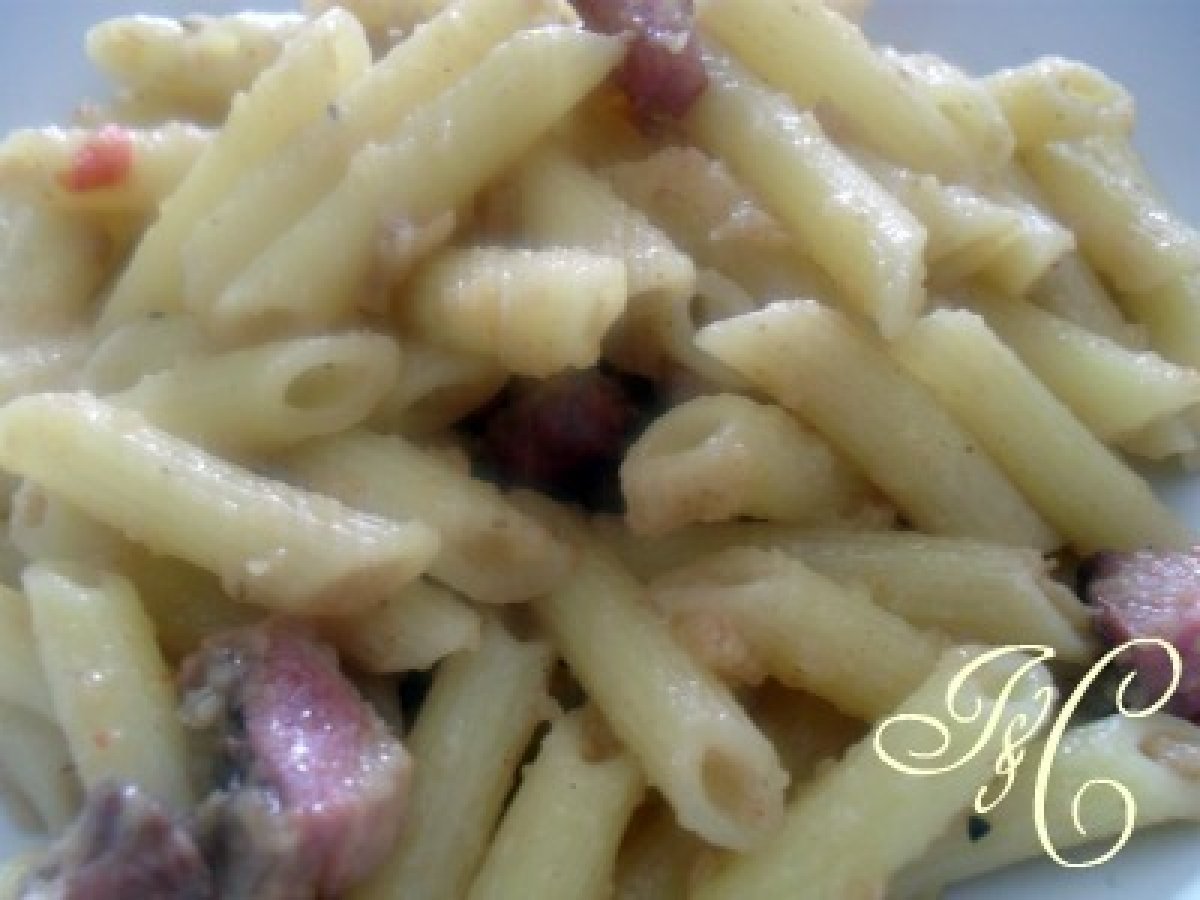 Pasta con pancetta e salsa di melanzane Portata principalemedia45 min589 Kcal Invia questa ricetta ad un amico Stampa la ricetta Contatta l'autore della Ricetta Pubblica la foto di questa ricetta Ingredienti 3 Un vasetto di Salsa / patè di melanzana; 200 gr Pancetta o guanciale; 1 spicchio d?aglio; Olio; 300 gr Pasta corta tipo pennette; Peperoncino; Costo stimato: 3.07Euros€ (1.02€/Porzioni)