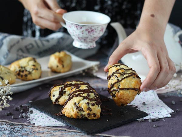 Gli scones sono l'accompagnamento ideale per un tradizionale tè inglese. Questi piccoli pani dolci, dalla consistenza morbida e spugnosa, a metà tra il pane e il pan di Spagna, vengono solitamente serviti con clotted cream e marmellata di fragole. La loro versatilità li rende perfetti per qualsiasi momento della giornata, che sia a colazione, a merenda o dopo cena. Oggi esistono varianti più sofisticate, con aggiunta di gocce di cioccolato per una versione più golosa o varianti salate, perfette per un brunch. Qualsiasi sia la versione, gli scones restano un dolce intramontabile che conquista per la sua semplicità e delicatezza.