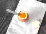 Anche in tal caso il tuorlo rimane morbido, ma la cottura dell'uovo va fatta senza il guscio. Portare l'acqua a bollore, aggiungendo un po' di aceto. Quindi abbassare la fiamma al minimo, affinché il bollore sia appena accennato. Sgusciare l'uovo in un piattino e versarlo nella pentola, dove preventivamente sarà stato formato un vortice, roteando un cucchiaio nell'acqua. Cuocere per circa 3 minuti e poi scolare con un mestolo forato (schiumarola)