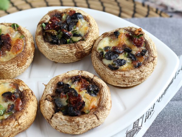 6. Champignon ripieni con mozzarella, olive e pomodori secchi