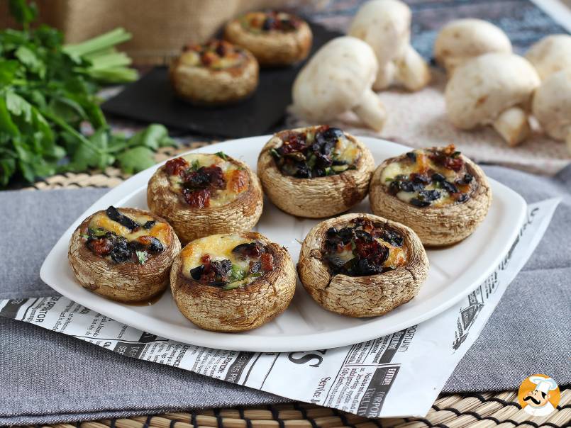 Lasciati tentare da questo finger food irresistibile! I nostri funghi champignon, farciti con mozzarella filante, olive nere e pomodori secchi, sono un'esplosione di sapori in ogni morso. Un'alternativa gourmet e senza glutine per i tuoi aperitivi.