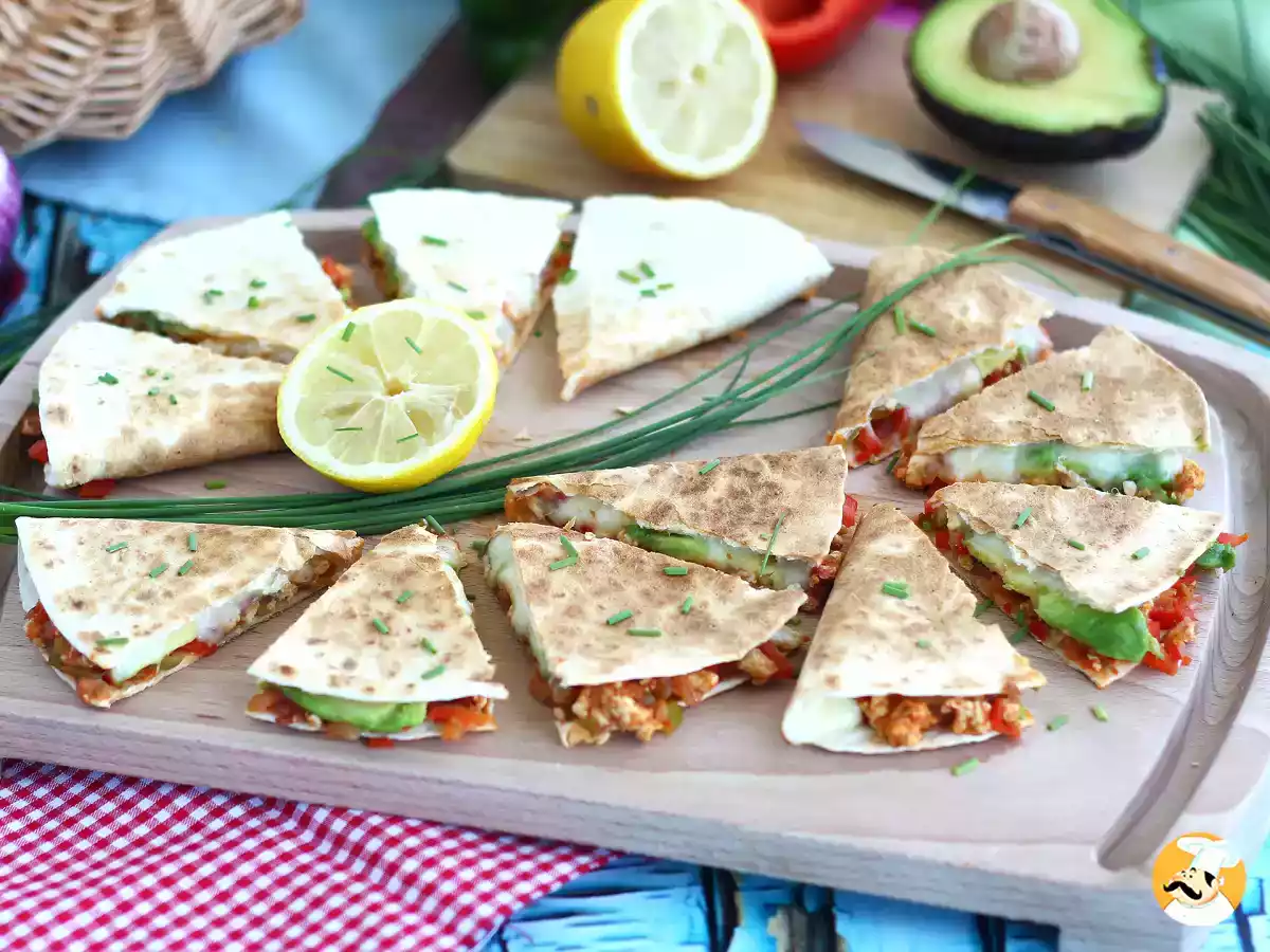 Direzione Messico con un'ottima ricetta per la tua cena veloce e appetitosa. Se non trovi le tortillas poco importa, le quesadillas di pollo verranno benissimo anche con le nostre piadine. Clicca sulla foto per scoprire gli altri ingredienti che ti servono e prova subito questa idea veloce. Que viva Mexico!