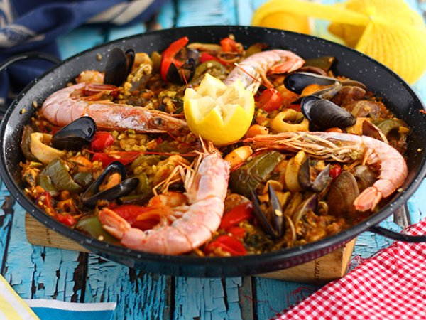 Direttamente da Valencia, la paella è uno dei piatti più emblematici della gastronomia spagnola. La tradizione vuole che i contadini locali utilizzassero riso, verdure di stagione e piccole quantità di carne o pesce che avevano a disposizione, cucinandoli in una grande padella di ferro.