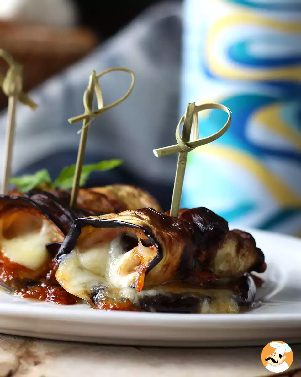 Golosissimi e super veloci da preparare. Si grigliano le melanzane in padella, si condiscono con formaggio a pasta semidura, si aggiunge il bacon (oppure il prosciutto cotto se preferite) e via in friggitrice ad aria per soli 6 minuti. Una ricetta con le melanzane fantastica che potrete servire anche come finger food se infilzate gli involtini con sfiziosi stecchini in legno (come abbiamo fatto noi). Provatela e scriveteci nei commenti cosa ne pensate!