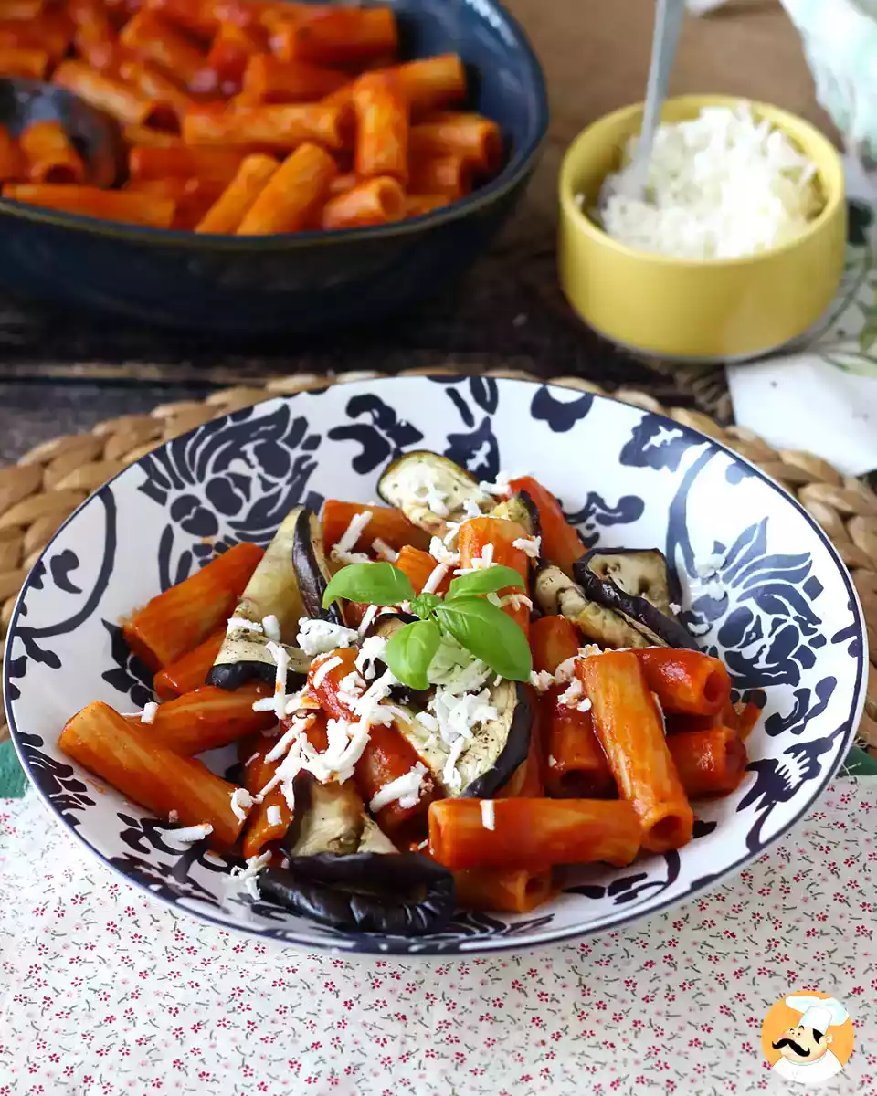 Una versione leggera della pasta alla norma: in questa ricetta le melanzane non vengono fritte ma cotte in forno e aggiunte a fine cottura. Il risultato è un primo piatto gustoso e facile da preparare che potrete proporre per una cena vegetariana con i vostri amici.