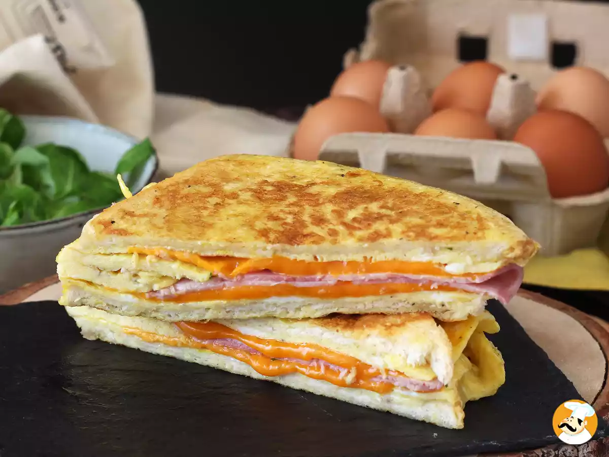 Detto anche Egg sandwich hack questo gustoso sandwich preparato con l'uovo è la ricetta perfetta per una cena economica e veloce. In pratica si prepara una frittata, poi si aggiungono le fette di pancarré, il prosciutto cotto ed il formaggio. Se hai amici a cena questa è la ricetta giusta per far colpo su di loro. Abbina il Frittata Sandwich con un'ottima birra artigianale!