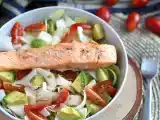 Hai un trancio di salmone in frigorifero? Preparalo al forno (oppure al microonde se sei in super ritardo) e servilo con una fresca insalata di avocado e pomodori oppure semplicemente accompagnato con del riso basmati. Questa idea è da tenere in considerazione anche se hai ospiti a pranzo o a cena in estate perché il piatto è molto bello anche da vedere!