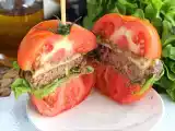 Un cheeseburger estivo molto sfizioso, la ricetta facile per portare in tavola un piatto particolare e nutriente. Abbiamo sostituito il classico panino per hamburger con un ottimo pomodoro di stagione ed il risultato è stato sorprendente. Provalo subito, si prepara velocemente: dovrai cuocere alla perfezione l'hamburger ed il gioco è fatto!