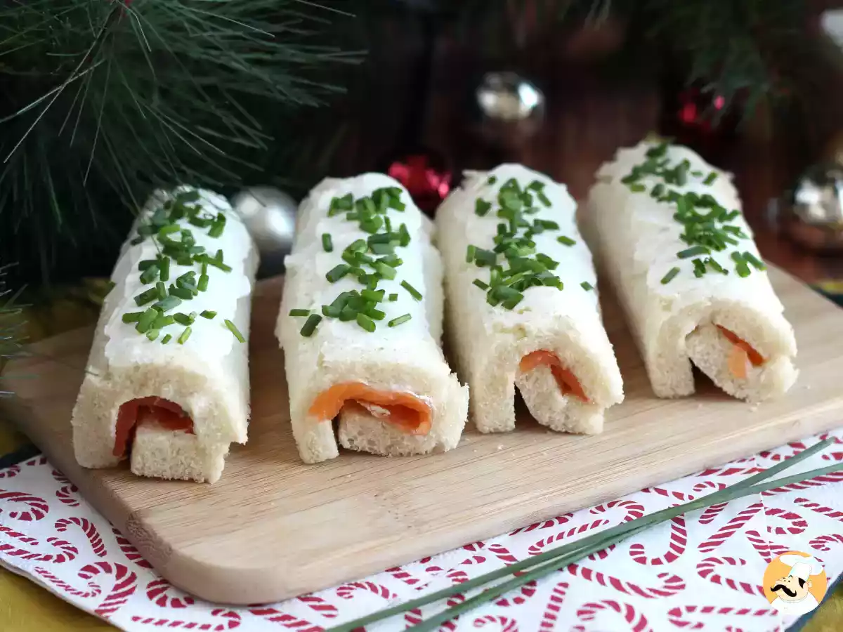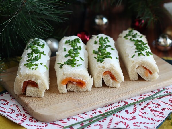Rimuovete la crosta dalle fette di pancarré e appiattitele delicatamente con un mattarello. Spalmate su ciascuna fetta un sottile strato di Philadelphia, quindi adagiatevi sopra le fette di salmone affumicato. Arrotolatele strettamente, quindi tagliatele a piccoli cilindretti. Per un tocco finale, guarnite con erba cipollina tritata, aggiungendo freschezza e colore al piatto. Foto della ricetta: Involtini di salmone affumicato