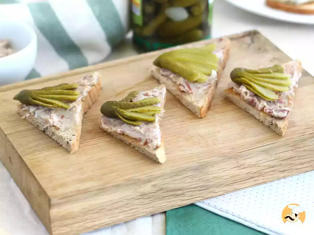 Un perfetto equilibrio tra rustico e raffinato: spalmate il paté su fette di pancarré leggermente tostato e arricchitele con i cetriolini sott'aceto, che aggiungono un tocco croccante e saporito. Un antipasto ideale per chi ama i sapori decisi e intens i, capace di sorprendere con la sua combinazione di tradizione e originalità. Foto della ricetta: Crostini di paté e cetriolini
