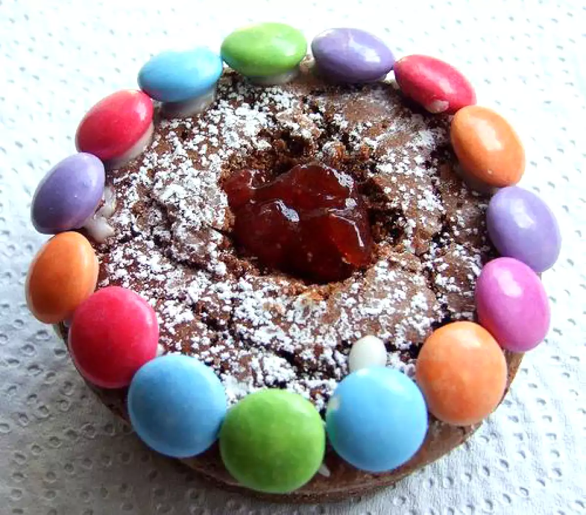 Una tortina al cacao con un goloso ripieno di confettura (scegliete voi quale utilizzare in base ai vostri gusti). Per decorarla abbiamo creato una ghirlanda di smarties colorati. È davvero perfetta per il il periodo di Carnevale. Cosa aspettate a prepararla?