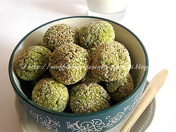Polpette di piselli al sesamo con salsa di yogurt alla menta