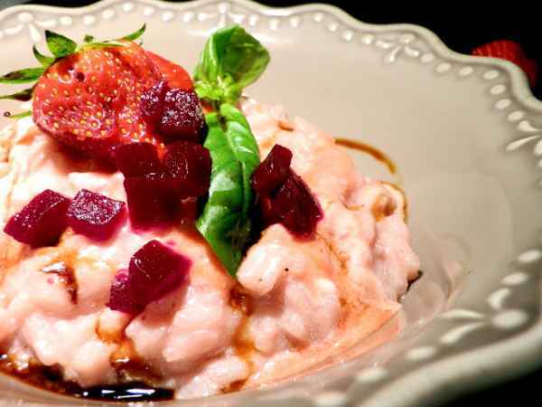 Risotto fragole e basilico all'aceto balsamico