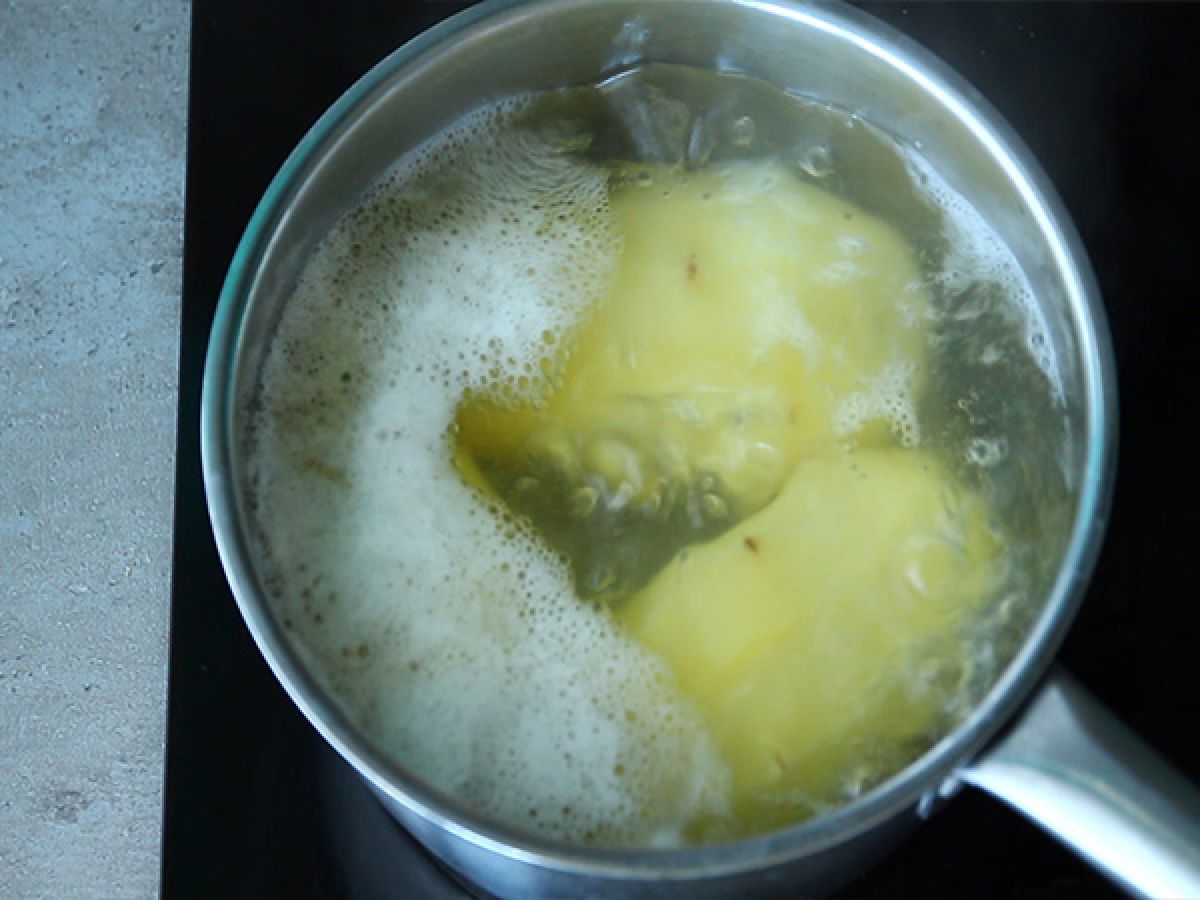 Nel frattempo, lessare le patate in un'altra pentola con acqua salata per circa 40 minuti, fino a quando saranno morbide.
