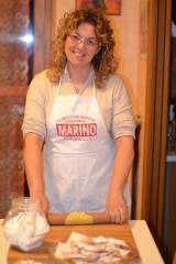 Anche lei, come Anastasia, ha scelto le uova di quaglia come ingrediente base dell'antipasto: caramelle salate alle uova di quaglia. Uno stuzzicante piatto alla portata di tutti e, sopratutto, adatto a grandi e piccini. In seguito, come portata principale, ci propone una raffinata pietanza: riso nero con pesto di carciofi e calamari. Il carciofo è un ingrediente che si trova spesso sulle tavole pasquali e l'accostamento al riso nero ne esalta il gusto generando un piatto sublime.