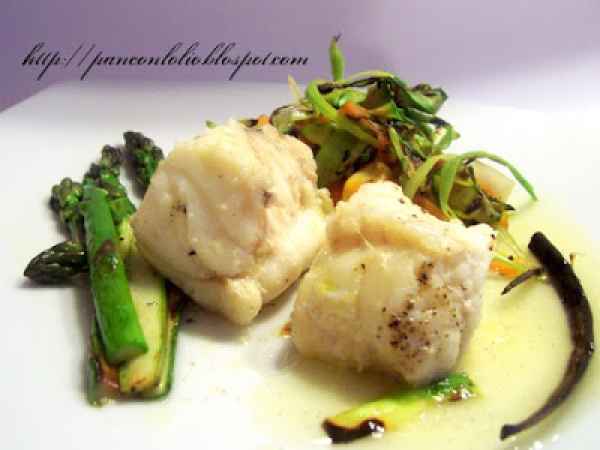 Rana pescatrice con salsa al limone, miele e vaniglia