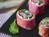 4. Rotolini di crepes alla barbabietola con ricotta e rucola