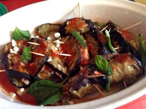 Involtini di melanzane con gamberi e feta