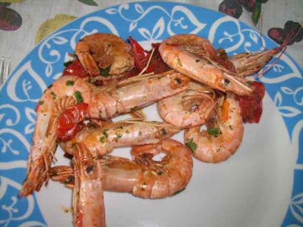 Gamberi in padella con pomodori pachino