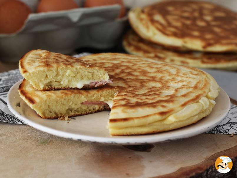 Cena economica - Pancake salati con prosciutto cotto e formaggio