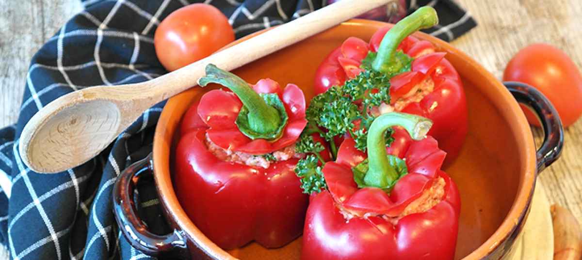 Gialli, verdi o rossi. Non importa il colore, i peperoni sono tutti perfetti per essere farciti con ingredienti semplici e gustosi. Certamente o gni peperone ha un sapore diverso e sta al cuoco utilizzare quello più adatto in base al ripieno scelto.