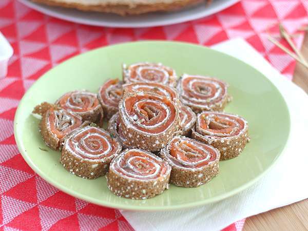 Rotolini di crêpes al grano saraceno farciti con salmone affumicato