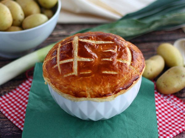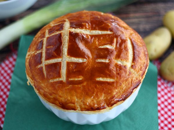 La zuppa è pronta. Sì, ma non una zuppa qualsiasi! Se hai ospiti vegetariani a cena questa è davvero una soluzione interessante da portare in tavola. Una volta pronta, la zuppa viene messa nelle ciotole poi ricoperta con uno strato di sfoglia e si ripassa in forno per circa 15 minuti (assicurati che le ciotole che usi sono adatte per la cottura in forno). Una ricetta vegetariana molto chic, ci piace molto e siamo sicuri che piacerà a tutti.