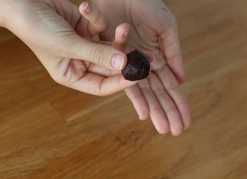 - Con un cucchiaio prelevare una quantità sufficiente a formare una pallina. Modellare con la mano.