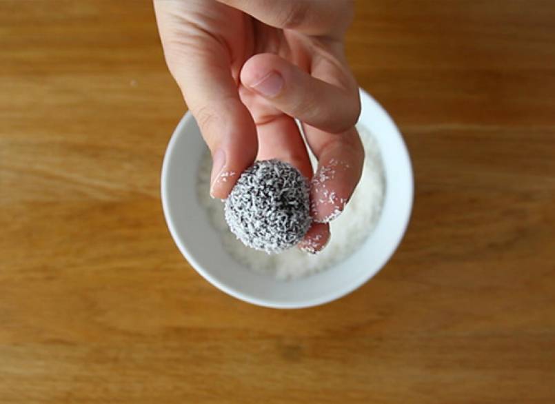 - Rotolare un tartufo nel cocco grattugiato, un altro nel cacao, e gli altri nelle perline di zucchero o negli zuccherini al cioccolato.