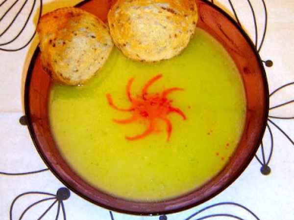 Vellutata di cavoletti di bruxelles, lattuga e patate allo zafferano