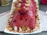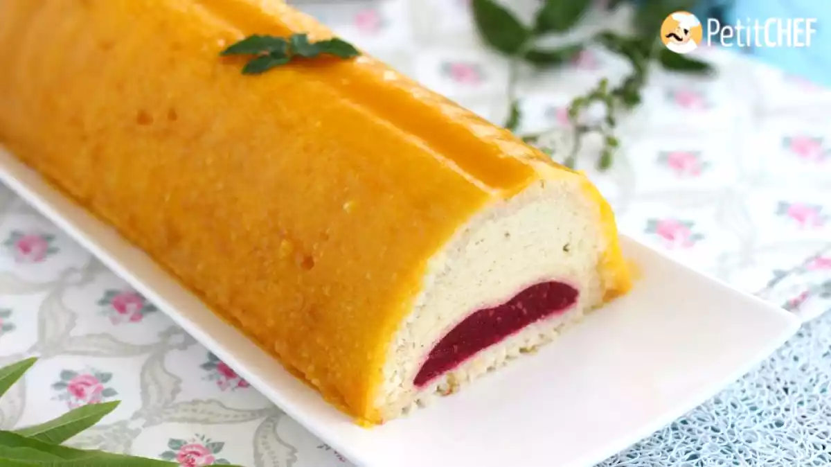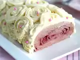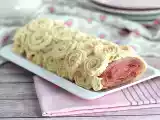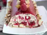 Tronchetto di crêpes con cioccolato bianco e confettura di lamponi
