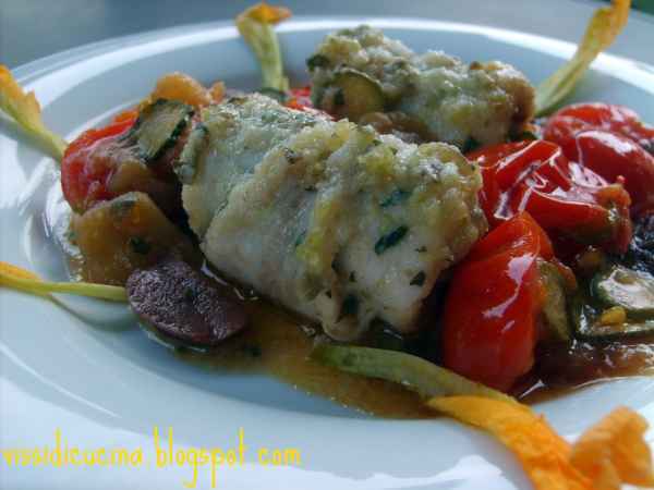 Involtini di sogliola con trito aromatico e verdure mediterranee