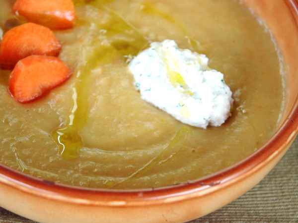 Minestra di verdure invernali con quenelle di formaggio fresco