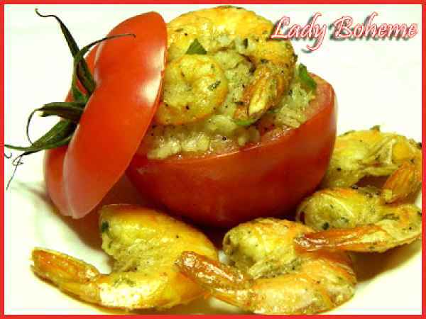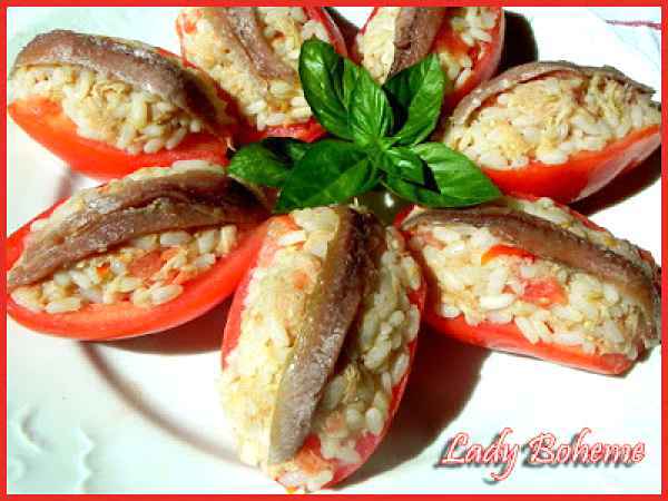L'esercito dei girasoli e i pomodori al forno, ripieni con riso e mazzancolle