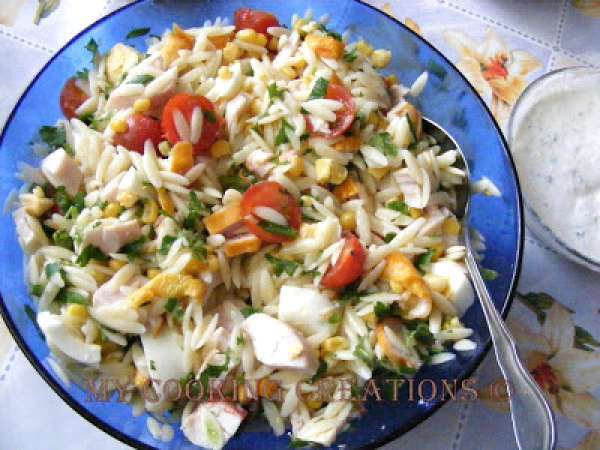 Insalata di orzo, pomodorini e pollo