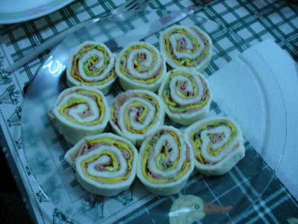 Rotolini di focaccia farciti con salsiccia, formaggio piccante e olive verdi Antipasto Antipasto 5 / 5