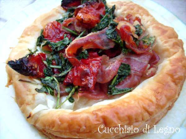 Sfogliatine al prosciutto, rucola e pomodori secchi