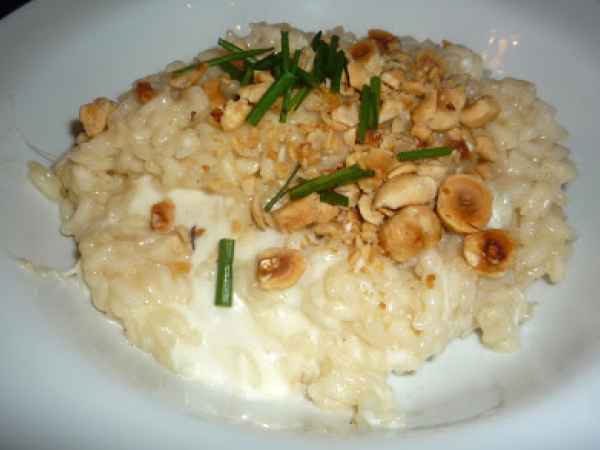 Riso venere nero su fonduta di zucca e taleggio con croccante al grana
