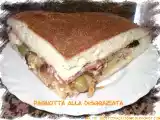 Involtini rustici con formaggio e olive su letto di pomodorini, al forno