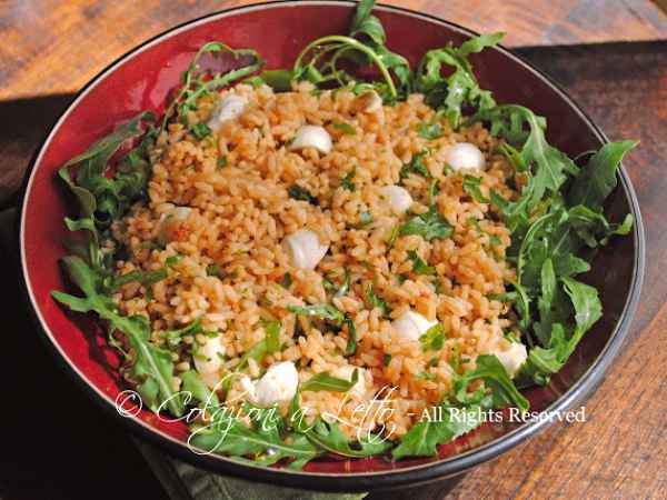 Riso freddo con pesto rosso, mozzarelline e rucola e "au revoir" a settembre