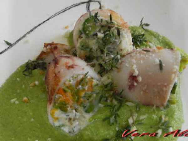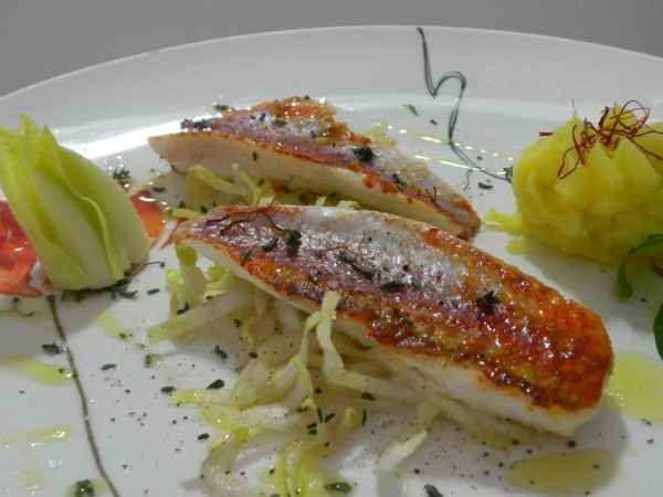 Filetti di triglia al timo scottati in padella con purea di patate allo zafferano