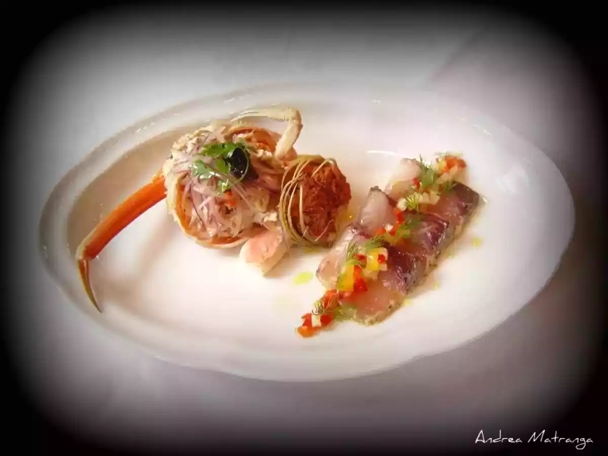 Antipasto di pesce marinato e granchio