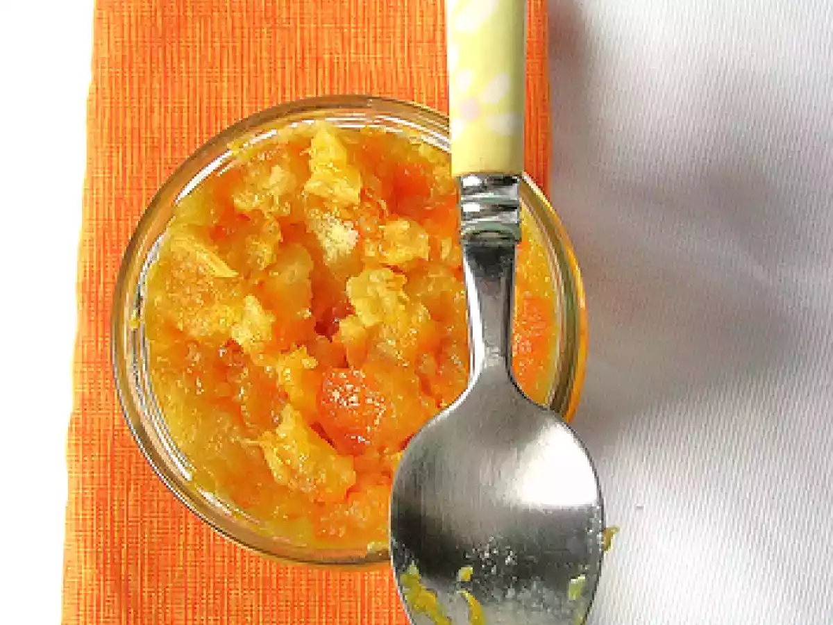 - Aggiungere un litro di acqua e 2 etti di zucchero. Far cuocere, mescolando spesso per circa due ore finchè non si rassoda il tutto. Mettere la marmellata nei vasetti precedentemente sterilizzati e chiusi ermeticamente e bollirli.