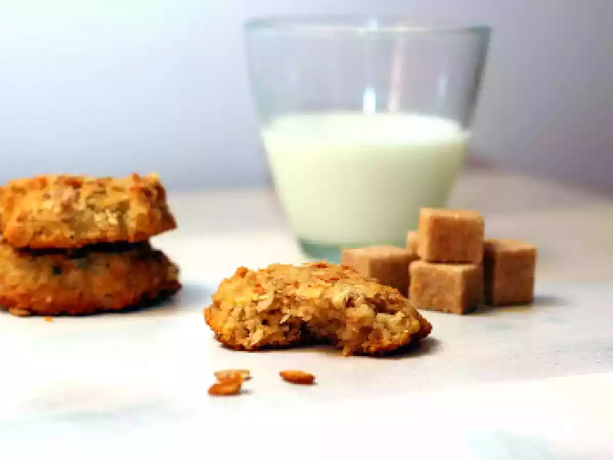 Biscotti ai fiocchi di cereali per bimbi PrecedenteProssimo Altrofacile50 min740 Kcal Invia questa ricetta ad un amico Stampa la ricetta Contatta l'autore della Ricetta Pubblica la foto di questa ricetta Ingredienti 3 100 g di fiocchi di avena 100 g di cocco in scaglie 100 g di zucchero di canna 100 g di farina 00 120 g di burro 2 cucchiai di miele 1 cucchiaino raso di bicarbonato di sodio 150 ml di acqua bollente Costo stimato: 2.36Euros€ (0.79€/Porzioni)